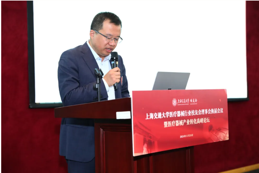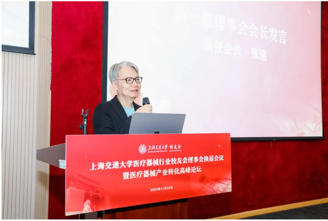 2024年11月24日,av解说 医疗器械行业校友会理事会换届大会暨医疗器械产业转化高峰论坛在徐汇校区新上院N100报告厅举办。av解说 校董、第三届医疗器械行业校友会名誉会长成明和,会长张浩,执行会长周颖华等百余位校友参加会议。