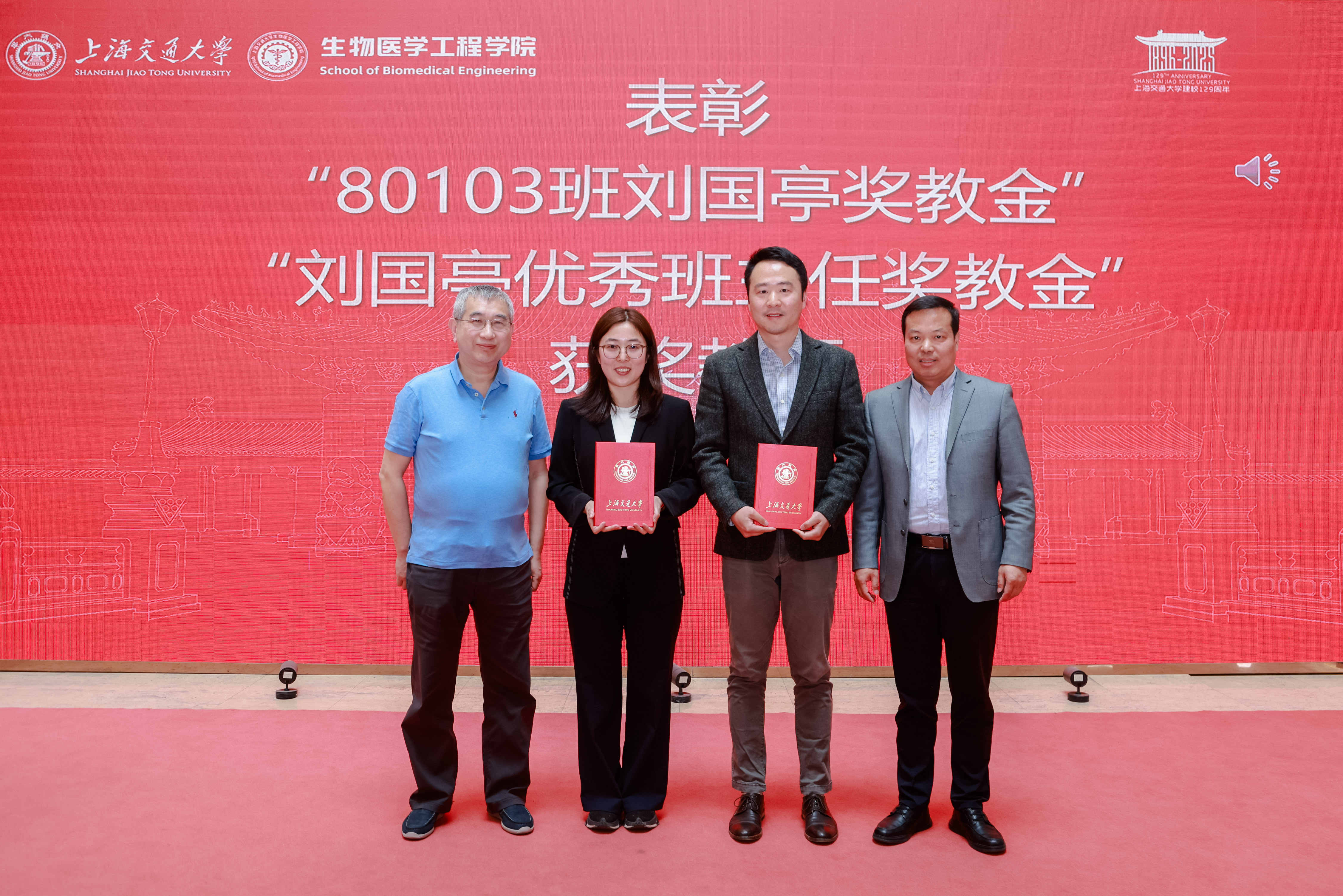 颁发“80103班刘国亭奖教金”、“刘国亭优秀班主”证书