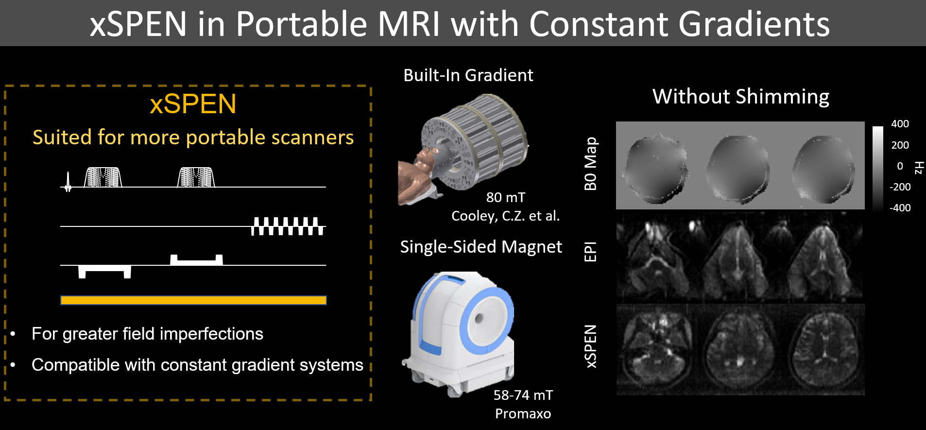 Yueqi Qiu, Ke Dai, Sijie Zhong, Suen Chen, Changyue Wang, Hao Chen, Lucio Frydman, Zhiyong Zhang, patiotemporal encoding MRI in a portable low-field system. Magnetic Resonance in Medicine. 2024; 92: 1011-1021.