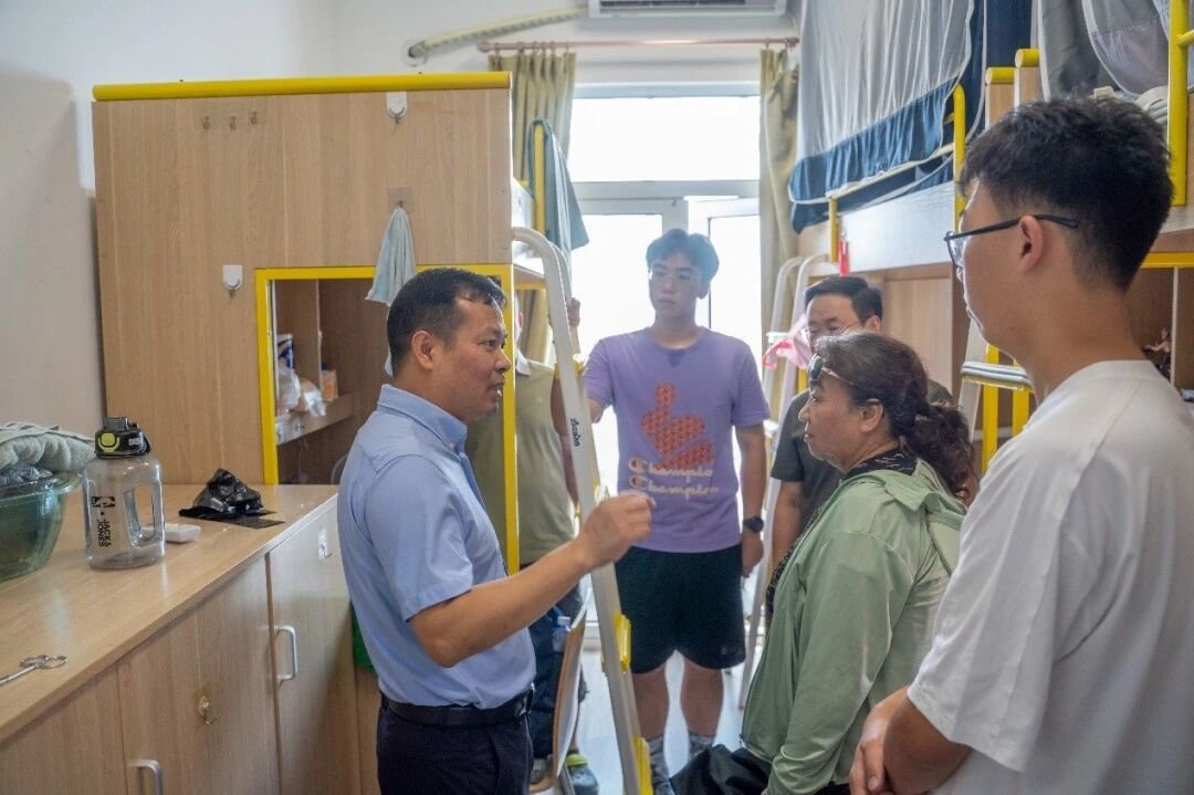 学院党委书记孔令体带领思政教师团队,走访新生寝室。每到一间宿舍,老师们都仔细查看住宿环境,关心新同学是否适应新生活新环境,让新同学们在陌生环境中感受到家的温暖。