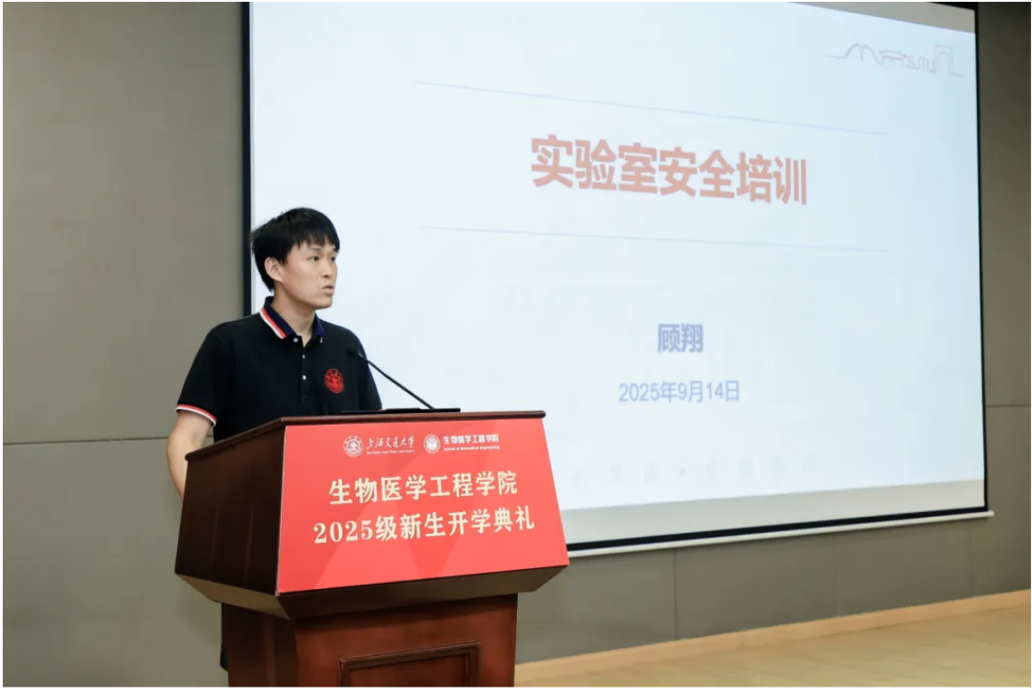 公共平台及实验室办公室的顾翔老师面向全体新生开展实验室安全教育。他带领新生一起学习实验室安全条例并重点介绍实验室应急处置预案,帮助新生提升安全意识与防范能力。