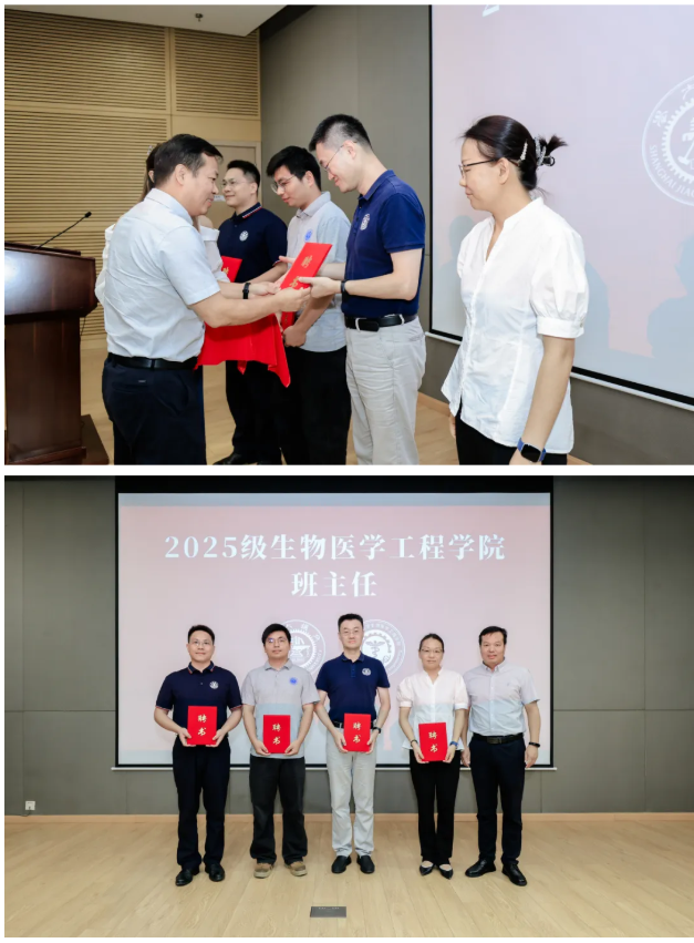 为了充分发挥医工交叉的学科优势,引领学生学术志向,学院选聘了多名青年才俊担任2025级新生班主任。付瑶瑶宣读了班主任聘任名单,孔令体为新生班主任颁发聘书。