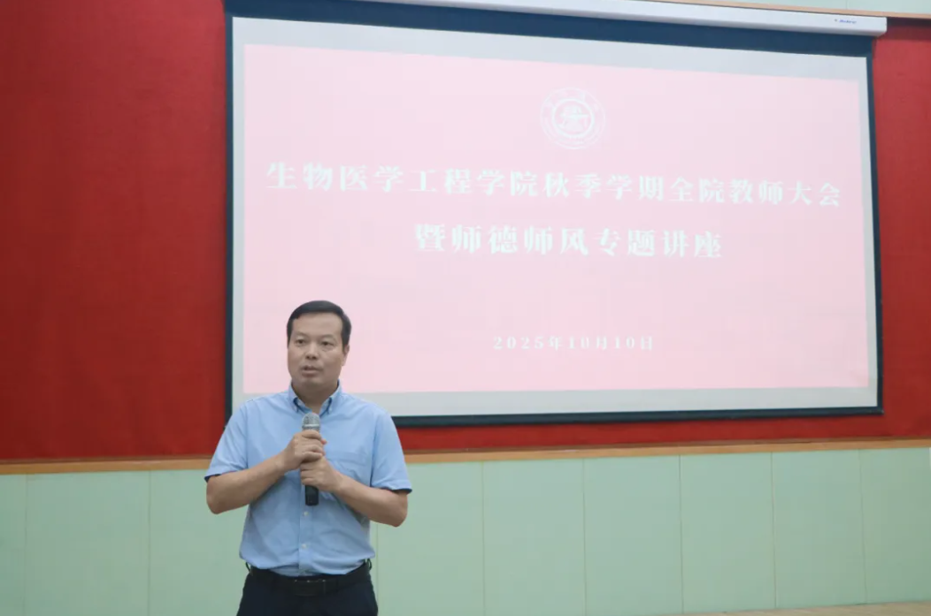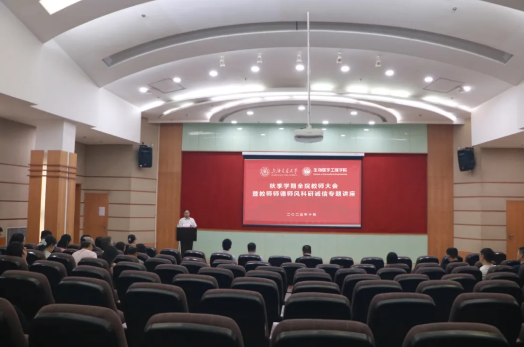2025年10月10日下午,av解说 在闵行校区文选医学大楼一楼报告厅举行2025年秋季学期全院教师大会暨师德师风科研诚信专题讲座。学校人力资源处副处长、党委教师工作部常务副部长陈贤峰,研究生院国际化办公室主任赵凤及办公室成员陈卜侨、陈铖、薛循丹,出入境管理与服务中心副主任万芸芸、事务主管胡新怡,学院部分领导班子及教师代表出席会议。大会由学院党委书记孔令体主持。