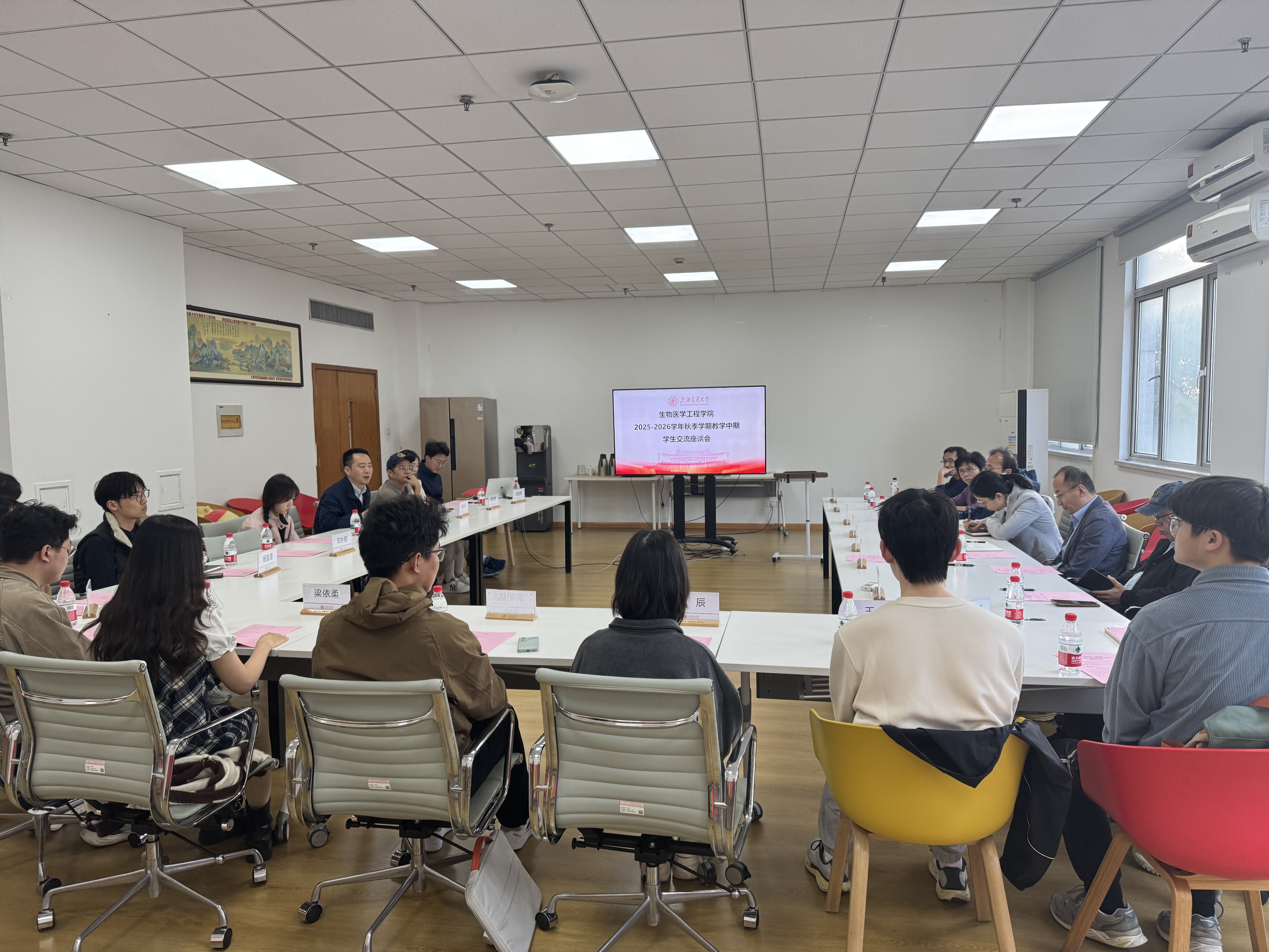 2025年10月29日下午,av解说 于闵行校区文选医学大楼311会议室举行2025-2026学年秋季学期教学中期学生交流座谈会。会议由本科教学副院长顾波波主持,教务处与教育技术中心相关教师、校院教学督导专家、本研学生代表及教务办教师共同参与,围绕教育教学以及学生诉求展开了深入交流。