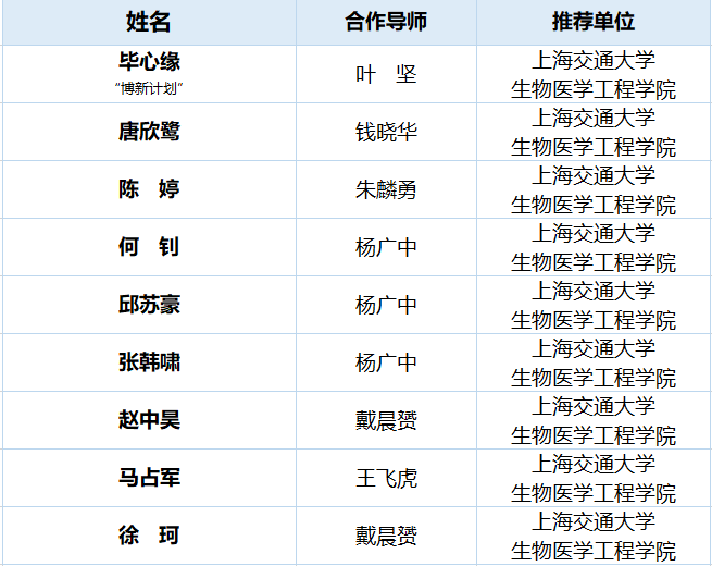 近日,根据《上海市“超级博士后”激励计划实施办法》的精神和要求,经博士后个人申报、单位推荐及上海市人才局组织专家评审,2025年上海市“超级博士后”激励计划拟资助人员名单火热出炉。其中,av解说 有9位博士后获得资助(已通过公示期),名单如下: