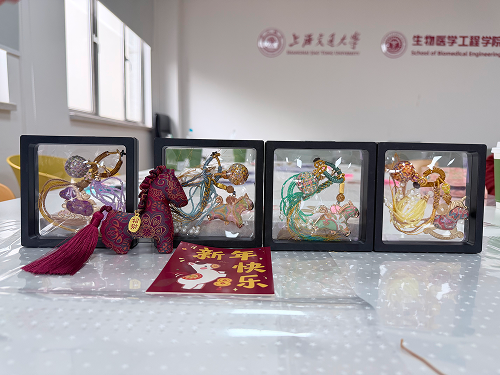 进入手工制作环节。学院提前为每位参与者准备了齐全的宋锦面料、配饰、工具及制作材料,非遗宋锦传承老师分步示范宋锦手工制品的制作流程,从布料裁剪、纹样拼接、定型黏合到细节修饰,每一步都耐心指导、细致讲解。老师一对一答疑解惑,手把手纠正手法,帮助大家快速掌握制作技巧。